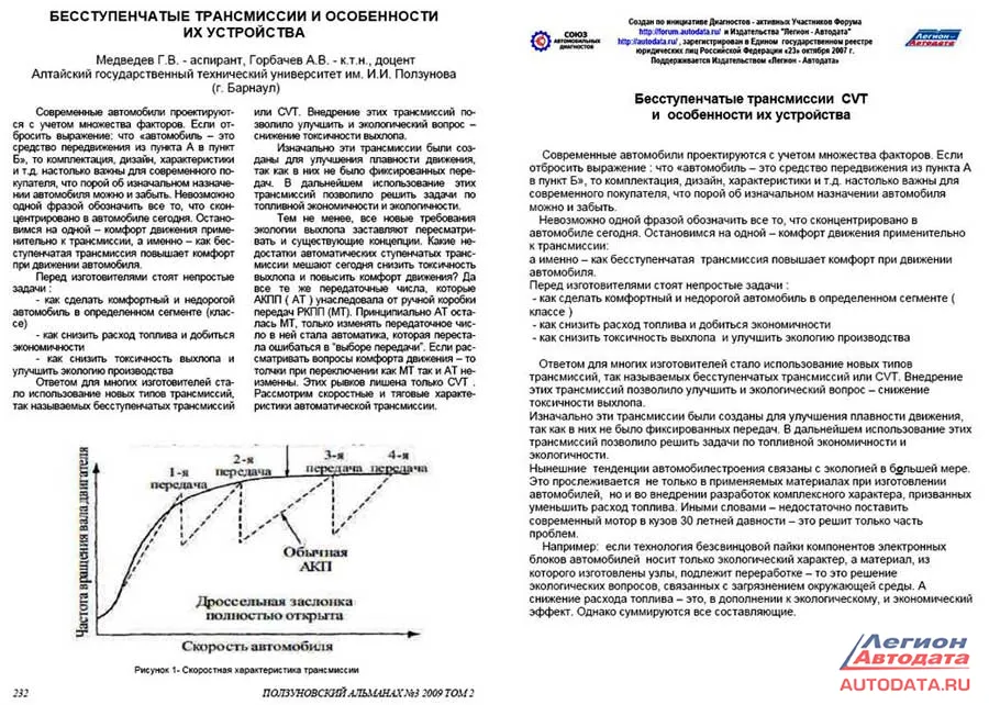 Кем реально были написаны статьи и кто принимал участие в их написании? Первая статья под названием «Бесступенчатые трансмиссии CVT и особенности их устройства» была написана нашим автором Аридом Омаровичем Гаджиевым ( г.Москва, ул.Ермакова Роща 7А, территория 14 ТМП, www.nissan-A-service.ru тел. +79265256300, е-mail: arid77@mail.ru, Союз автомобильных диагностов)