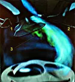 2 - струя воздуха (на фото - момент начала закручивания воздушной струи)