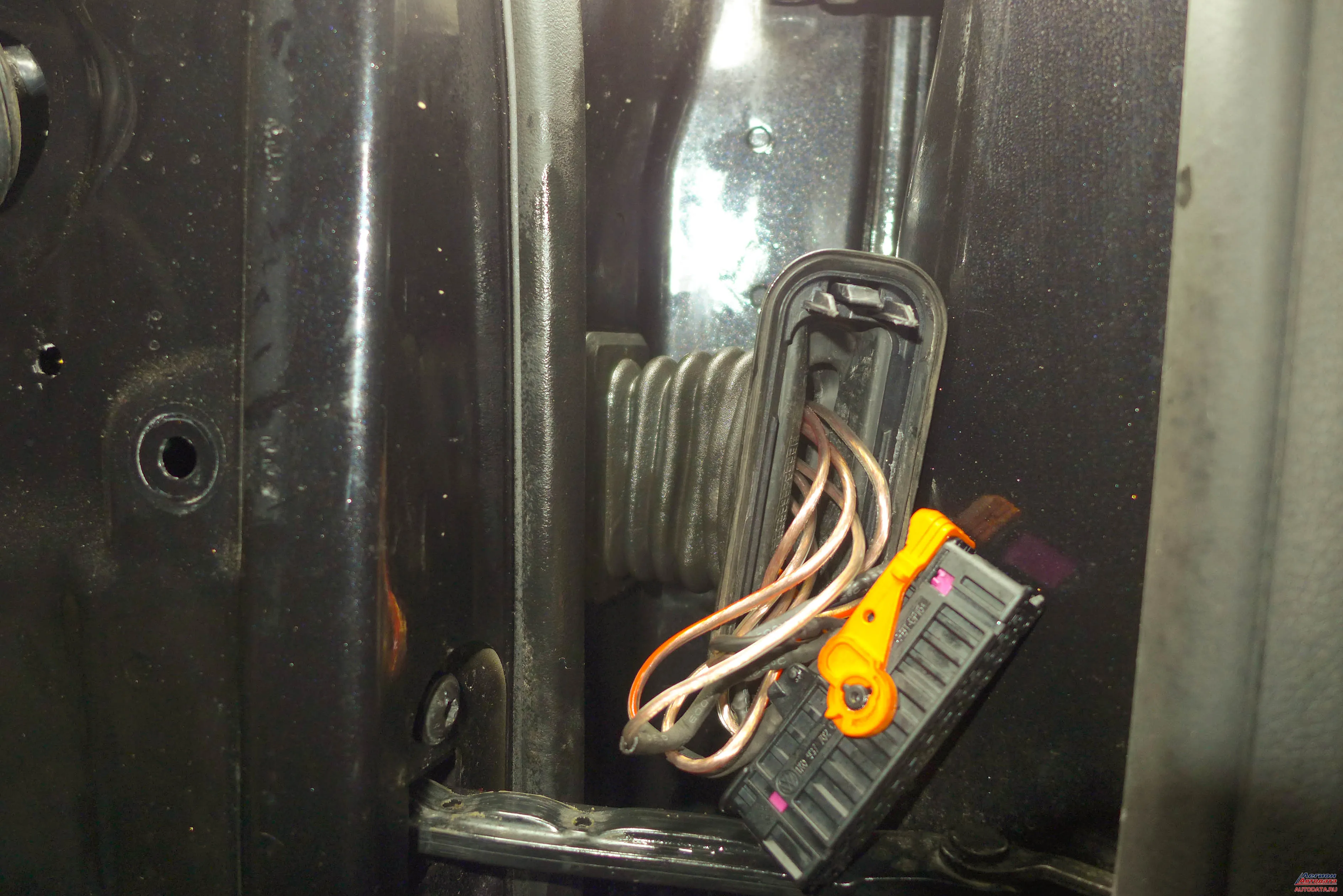 Работа, на первый взгляд, простая, ничего сложного!Однако повнимательнее посмотрите на фото – разобрать пришлось немало, чтобы вытащить пострадавший жгут из двери на достаточную длину для удобной работы и качественного ремонта.