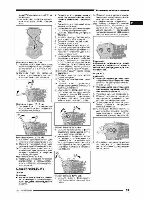 Издание содержит подробные инструкции по обслуживанию, диагностике, ремонту и регулировке двигателя, системы управления двигателем, 5-ступенчатой МКПП, автоматической бесступенчатой коробки передач (вариатора), тормозной системы, рулевого управления и т.д.