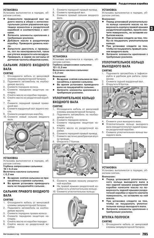 Издание содержит подробные инструкции по обслуживанию, диагностике, ремонту и регулировке двигателя, системы управления двигателем, роботизированной коробки переключения передач, раздаточной коробки, тормозной системы, рулевого управления и т.д.