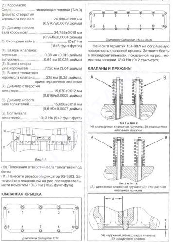 Клапанные механизмы типа 1 и типа 2, двигатели caterpillar 3114 и 3116 7