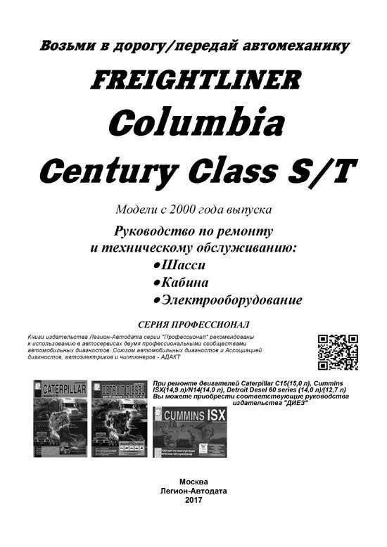 Книга Фредлайнер Коламбия, Центури Класс С и T с 2000. Электросхемы. Шасси. Кабина. Электрооборудование. Руководство по ремонту, техническому обслуживанию шасси, кабины и электрооборудования грузового автомобиля. Серия Профессионал.