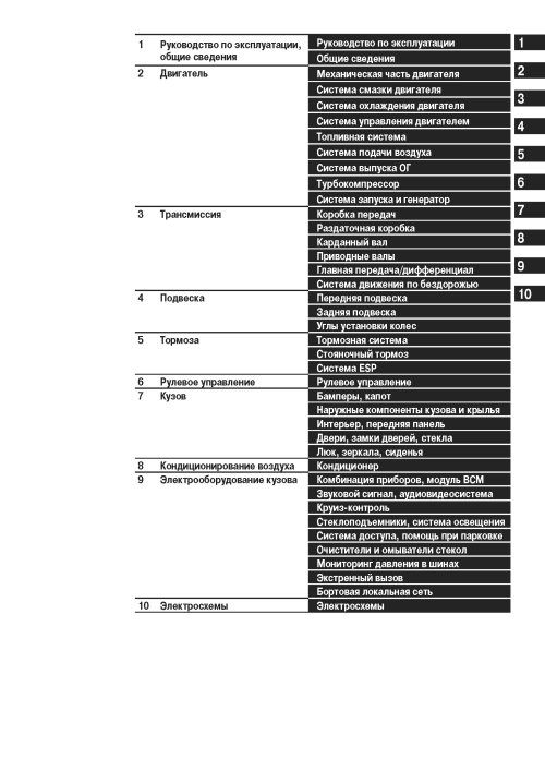 Издание содержит подробные инструкции по обслуживанию, диагностике, ремонту и регулировке двигателя, системы управления двигателем, 7-ступенчатой роботизированной коробки переключения передач, раздаточной коробки, тормозной системы, рулевого управления и т.д.