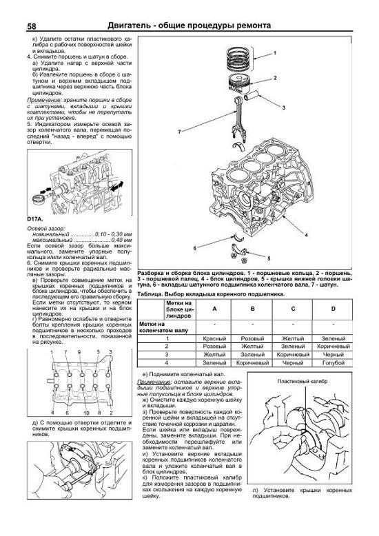 В руководстве дается пошаговое описание процедур по эксплуатации, ремонту и техническому обслуживанию бензиновых двигателей Honda D13 (1,3 л), D14 (1,4 л), D15 (1,5 л), D16 (ZC) (1,6 л ) и D17 (1,7 л).