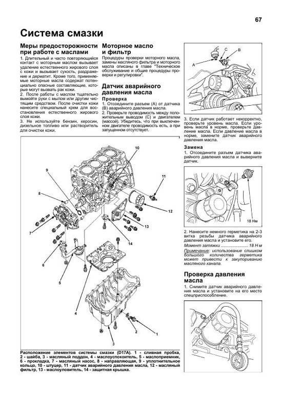 Издание содержит подробные сведения по ремонту и регулировке механизмов двигателя, элементов системы впрыска топлива, системы изменения фаз газораспределения и высоты подъёма клапанов (VTEC, VTEC-E), систем зажигания, запуска и зарядки, инструкции по использованию системы самодиагностики двигателя.