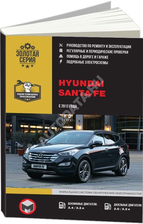 Купить книгу по ремонту и эксплуатации автомобиля Hyundai Santa Fe 2012-19 с бензиновыми 2.4, 3.3 и дизельными 2.0, 2.2 двигателями, электросхемы Вы можете в нашем интернет-магазине с доставкой Почтой России или курьером по Москве.