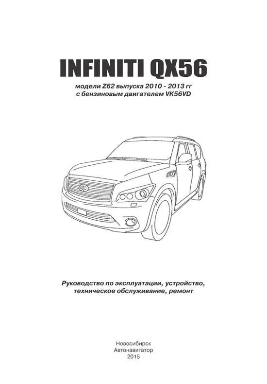 Купить книгу по ремонту и эксплуатации автомобиля Infiniti QX56 Z62 2010-2013 с бензиновым двигателем VK56VD 5.6, электросхемы Вы можете в нашем интернет-магазине с доставкой Почтой России или курьером по Москве.