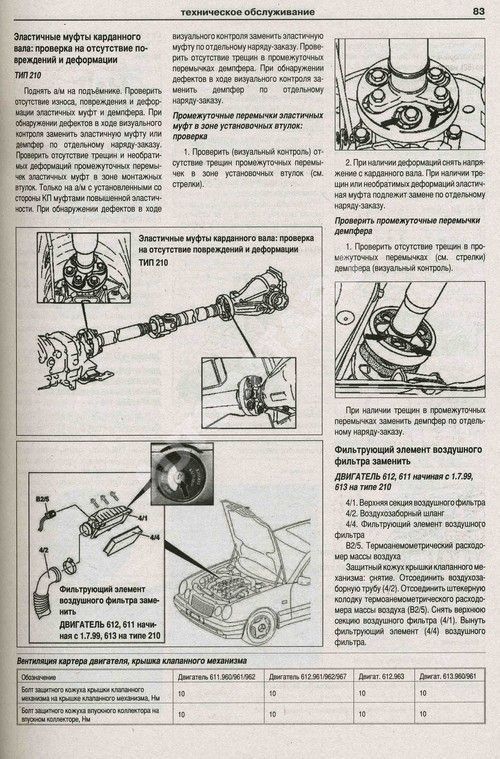 Техническое руководство по ремонту расскажет как можно грамотно провести большинство операций по диагностике и ремонту самых разных узлов, агрегатов и деталей, двигателя автомобиля Мерседес Е-класса. Мануал поможет своему владельцу не только в гараже, но может случиться он станет совсем незаменимым в дороге, особенно в дальней, например в момент когда рядом просто напросто не окажется кого-либо, кто мог бы помочь грамотным советом или конкретным действием.