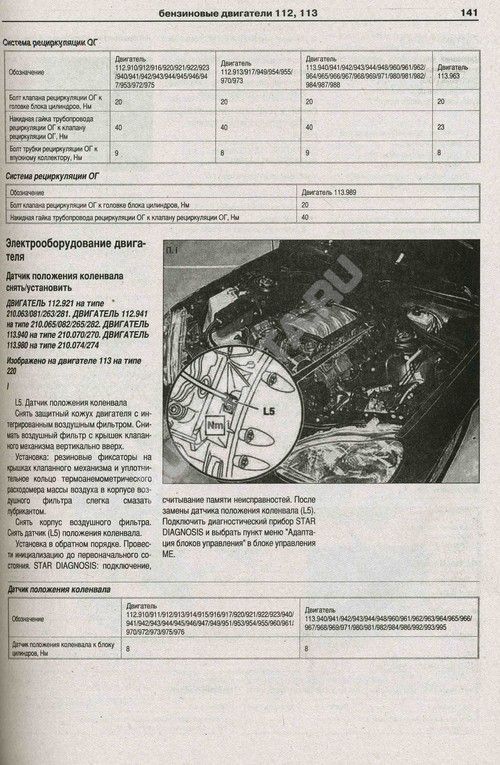 Глава 3. Двигатели 112/113-электрооборудование двигателя,датчик положения коленвала............141
