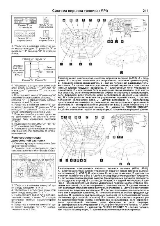 Издание содержит руководство по эксплуатации, подробные сведения по техническому обслуживанию автомобиля, диагностике, ремонту и регулировке систем двигателя (в т.ч. систем впрыска топлива, регулировке фаз газораспределения и подъема клапанов (MIVEC), зажигания, запуска и зарядки), элементов механических коробок передач (МКПП), вариатора (CVT), раздаточной коробки, заднего редуктора (включая систему управления полным приводом (4WD)), элементов тормозной системы (включая антиблокировочную систему тормозов (ABS), систему электронного распределения тормозных усилий (EBD), противобуксовочную систему (TCL), систему курсовой устойчивости (ASC)), рулевого управления (в т.ч. системы электронного усилителя (EPS)), подвески, кузовных элементов, систем вентиляции и кондиционирования (AC), системы пассивной безопасности (SRS).