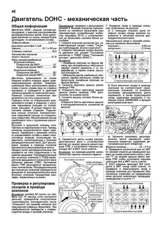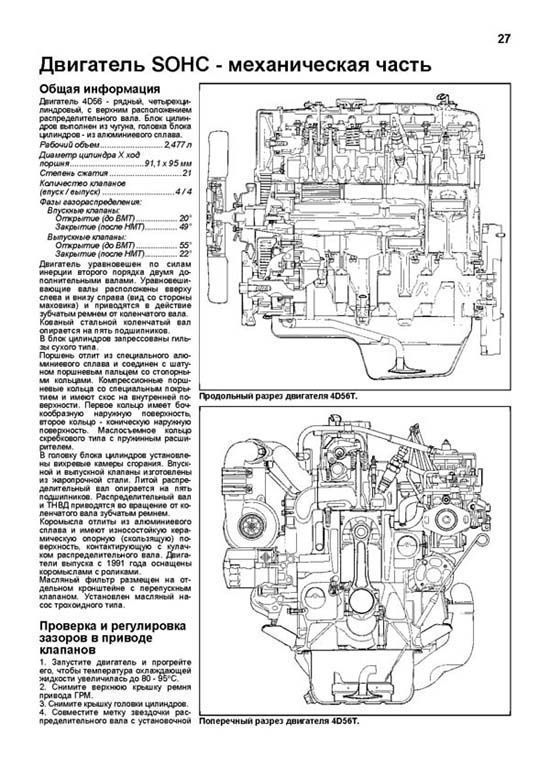Руководство по ремонту дизельных двигателей Mitsubishi 4D56 / 4D56 EFI / 4D56 DI-D (2,5 л), Hyundai D4BF (2,5 л) и D4BH TCI (2,5 л), устанавливаемых на автомобили с правым и левым расположением рулевого колеса: