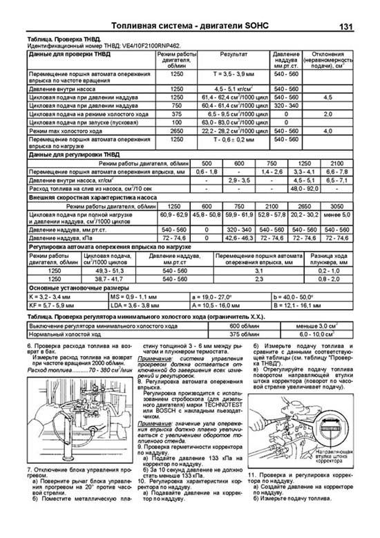 Издание содержит подробные сведения по техническому обслуживанию двигателей, ремонту и регулировке механических частей двигателей (SOHC и DOHC), смазки, охлаждения, турбонаддува, рециркуляции отработавших газов (EGR), запуска и зарядки. В книге подробно рассмотрены процедуры по диагностике, ремонту и регулировке ТНВД распределительного типа (без электронного управления, с электронным управлением (EFI, COVEC-F)).