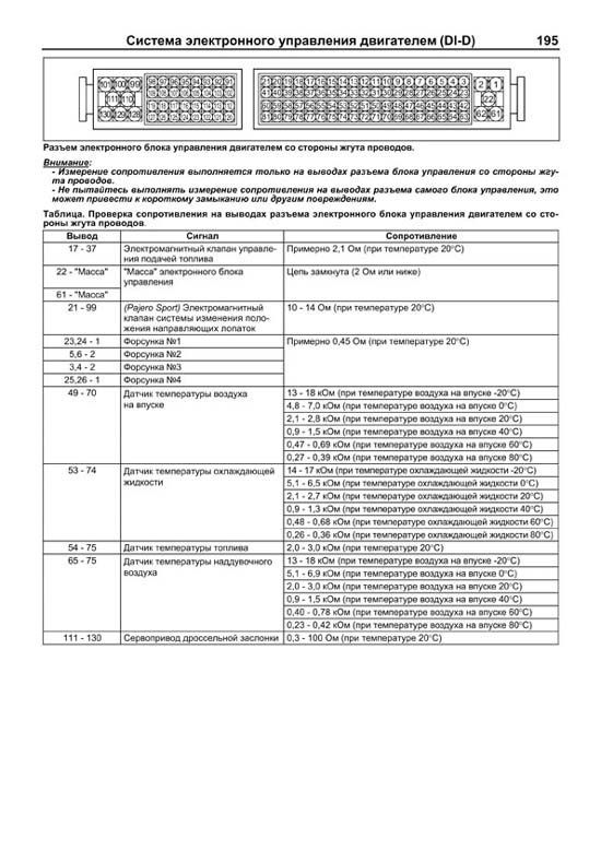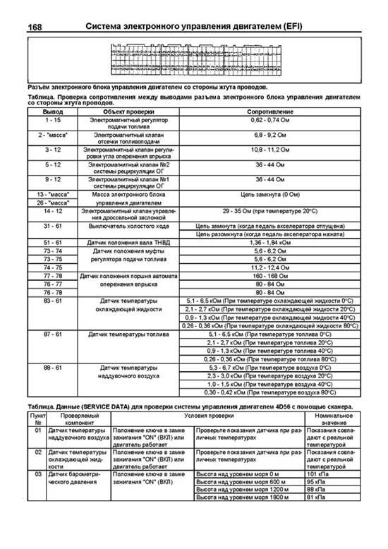 Отдельная глава посвящена процедурам ремонта и диагностики двигателей с системой Common Rail (4D56 DI-D).