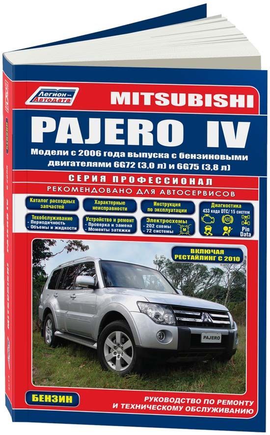 Книга Митсубиси Паджеро 4 с 2006 с бензиновыми двигателями 6G72 3.0 и 6G75 3.8. Включая рестайлинговые модели с 2010. Каталог расходных запчастей, электросхемы, характерные неисправности, диагностика. Руководство по ремонту и техническому обслуживанию автомобиля. Серия Профессионал.