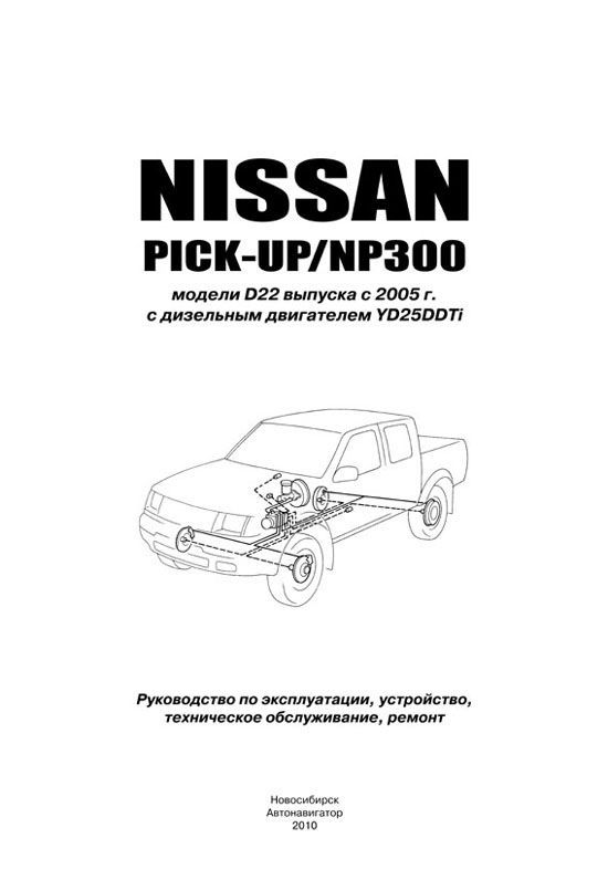 В издании представлено руководство по эксплуатации, техническому обслуживанию и ремонту автомобилей с кузовом D22 Nissan Pick-up , NP300, оснащенных дизельным двигателем YD25DDTI
