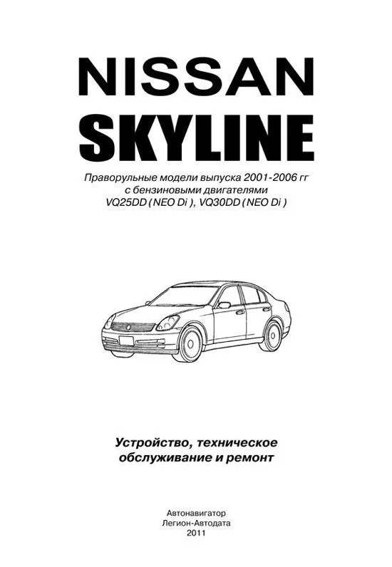 Купить книгу по ремонту и эксплуатации автомобиля Nissan Skyline V35 2001-2006 с бензиновыми двигателями VQ25DD NEO Di, VQ30DD NEO Di, электросхемы Вы можете в нашем интернет-магазине с доставкой Почтой России или курьером по Москве.