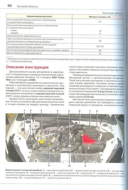 Иллюстрированное руководство содержит подробную информацию по вопросам повседневной эксплуатации, регулярного технического обслуживания и текущего ремонта автомобилей Renault Arkana с 2019 с бензиновыми двигателями 1,3 Turbo и 1,6, с механической и автоматической коробками передач.