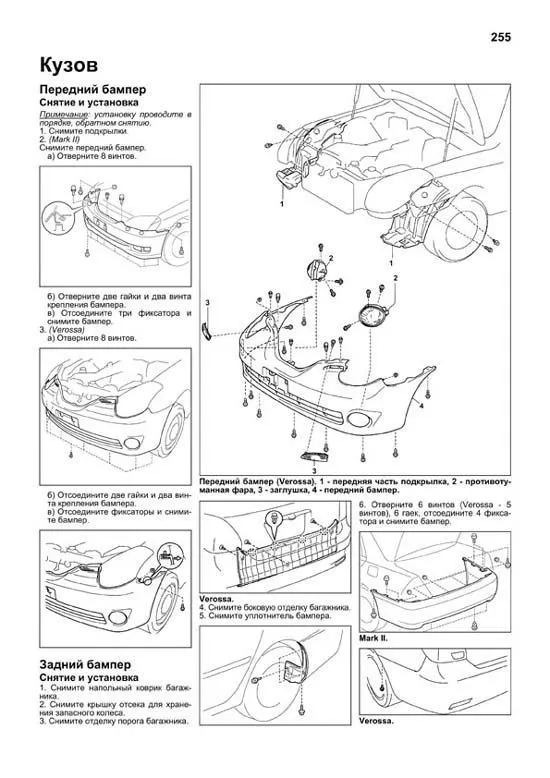 Руководство по ремонту Toyota Mark II / Mark II Blit / Verossa, оборудованных бензиновыми двигателями 1G-FE (2,0 л), 1JZ-GE (2,5 л), 1JZ-FSE (2,5 л D-4). Рассмотрены заднеприводные и полноприводные модели автомобилей.