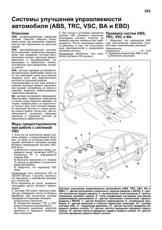 Издание содержит руководство по эксплуатации, описание систем, подробные сведения по техническому обслуживанию автомобиля; диагностике, ремонту и регулировке элементов систем двигателя (в. т.ч. систем впрыска топлива, электронного управления ТНВД (EFI), зажигания, запуска и зарядки), автоматических коробок переключения передач (АКПП), раздаточной коробки, тормозной системы (включая антиблокировочную систему тормозов (ABS), систему экстренного торможения (ВА), систему курсовой устойчивости (VSC) и противобуксовочную систему (TRC)), рулевого управления и подвески (в т.ч. системы изменения режима работы амортизаторов (TEMS)), кузовных элементов, систем кондиционирования и вентиляции (АС), системы пассивной безопасности (SRS).