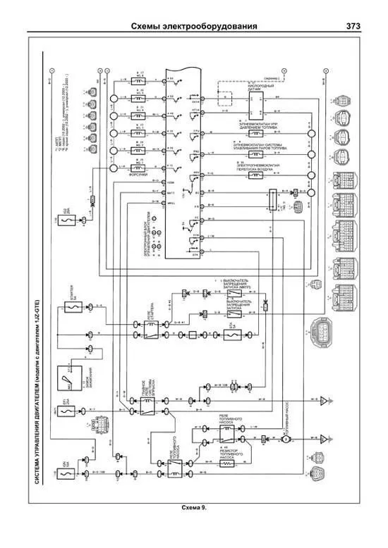 Схема 9. Система управления двигателем (модели с двигателем 1JZ-GTE). Блокировка переключения 373 - 376