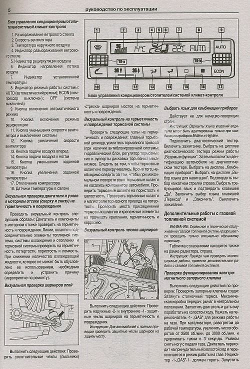 В издании подробно описаны процедуры периодического обслуживания (включая таблицы периодичности проведения технического обслуживания различных модификаций автомобиля, типы и объемы рабочих жидкостей и т.д.), приведено описание основных и вспомогательных систем автомобиля, включая особенности их устройства и работы. Для удобства использования, все системы разбиты по главам.