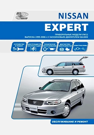 Руководство по эксплуатации, техническому обслуживанию и ремонту праворульных автомобилей Nissan Expert VW11 выпуска 1999-2006 гг., 2WD и 4WD, оснащенных бензиновым двигателем QG18DE (1.8).